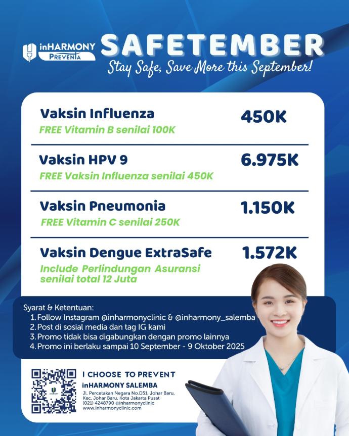 Dapatkan promo SAFETEMBER: vaksin + bonus spesial sepanjang bulan.
